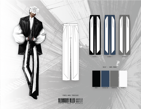 Tailoring is fused indistinguishably with thoughtless drapes designed to be dragged carelessly through the muddied streets beneath towering superstructures